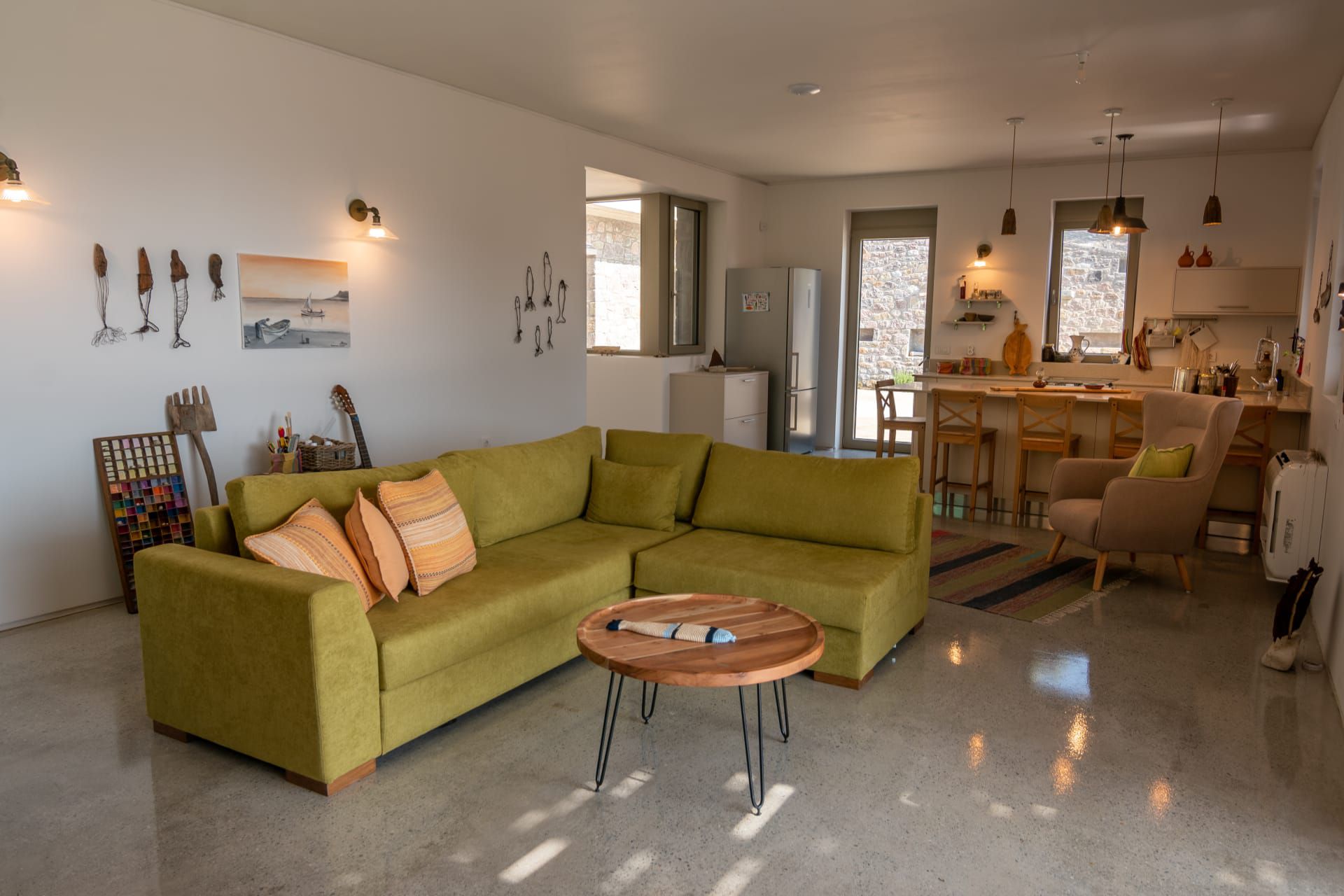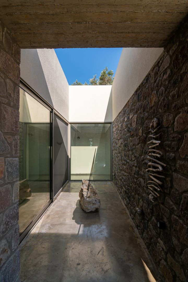 The project is designed for two closely connected families who wanted to get rid of the burden of modern urban life by creating a space where they can go on vacation and get some rest. Coming from an intensely urban centre abroad, they choose a special site at the entrance of the Gulf of Yera in Lesvos island and decide to create the proper conditions to inhabit the place with its specific landscape.
